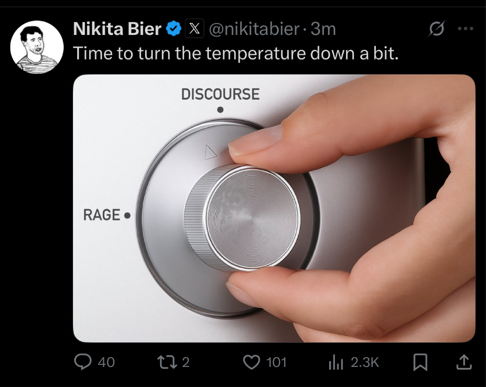 The residents of Palo Alto shouldn’t decide what we get to see. In a now deleted tweet, Nikita Bier, X’s head of product, sent out this image in response to the Charlie Kirk assassination.