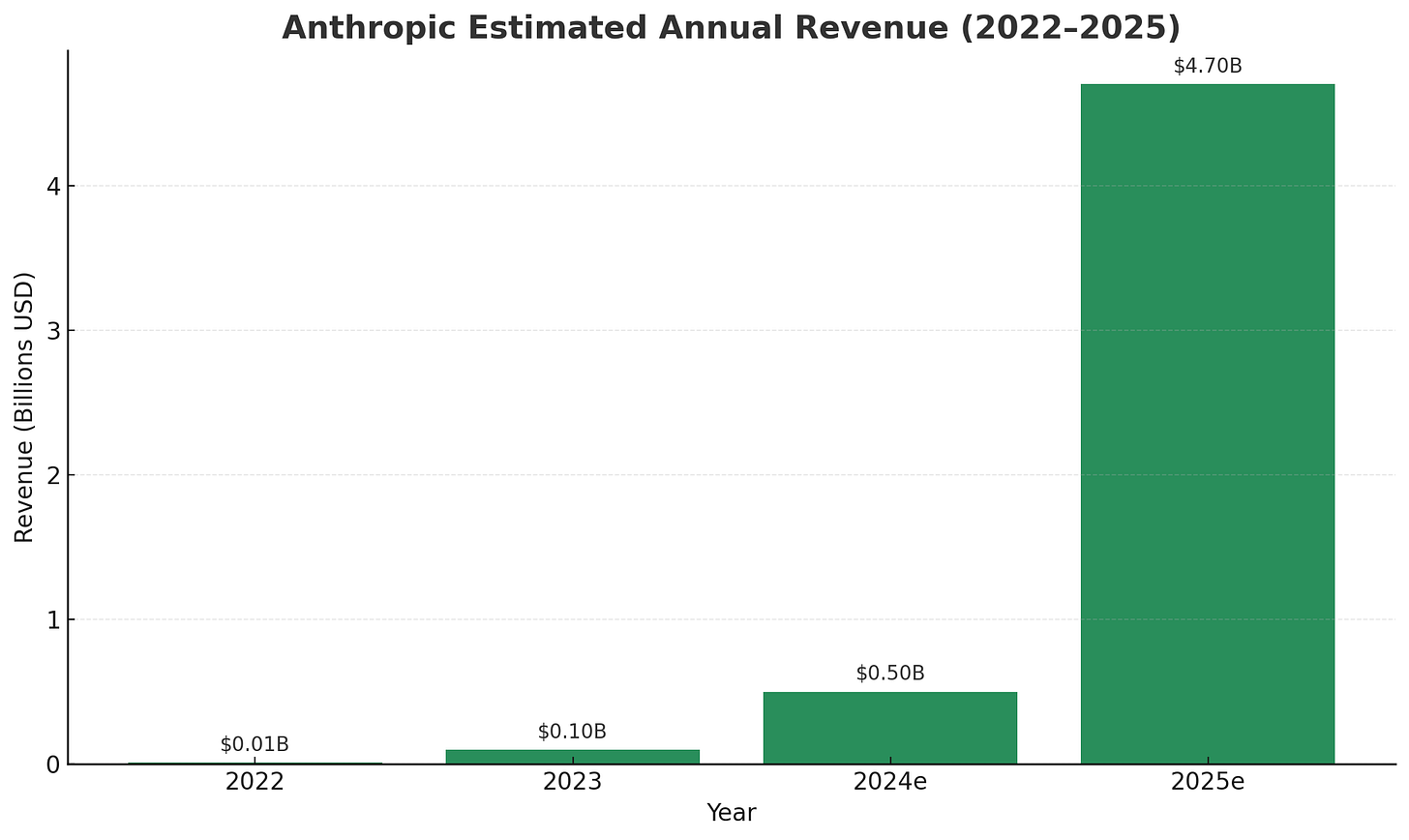 Let’s begin with a chart. The appropriate reaction to this chart should be your mouth forming into a mildly circular shape, and a sound, involuntary and unintelligible, escaping your lips. This chart shows Anthropic’s annual revenue over the last 4 years.