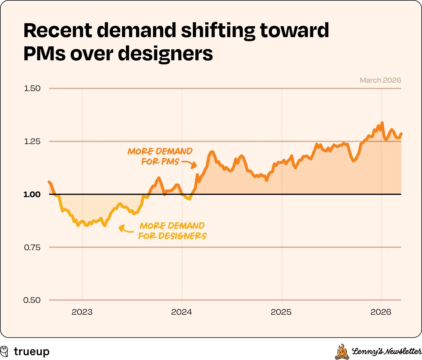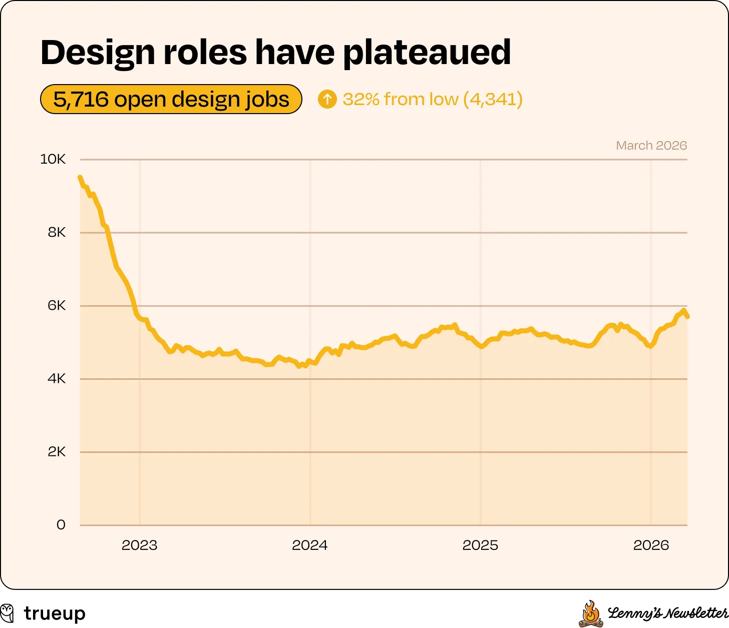 According to analysis done by friend of the publication Lenny Rachitsky, the number of open design roles has completely plateaued.