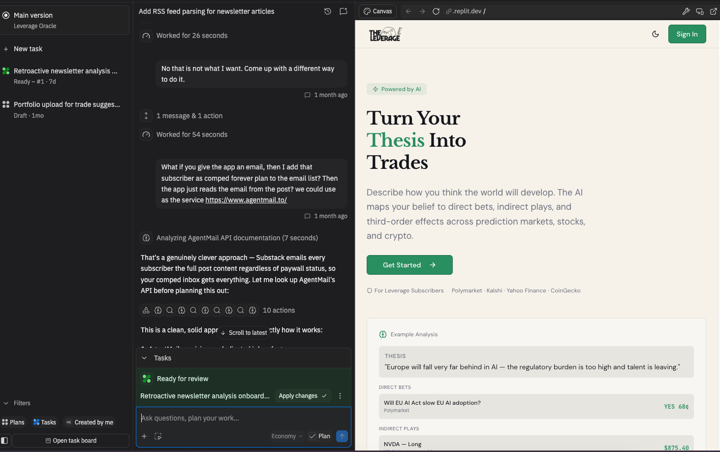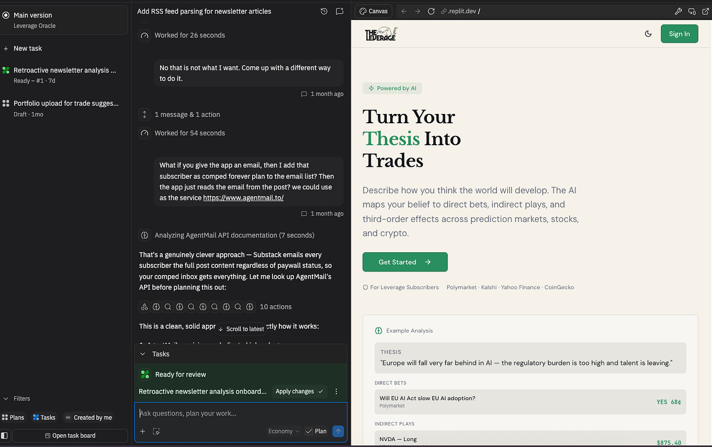 Kanban is for managing many agents generating in parallel. This will likely become the dominant paradigm of agents because it maps to how organizations already manage distributed work. It has already been embraced by Replit, Devin, and Cursor’s background agents. The user defines deliverables and tasks while multiple AI agents build in the background, all united by a kanban board to track progress. This is the paradigm that most directly threatens designers because it reframes their contribution as one task card among many, rather than the discipline that shapes the entire product.